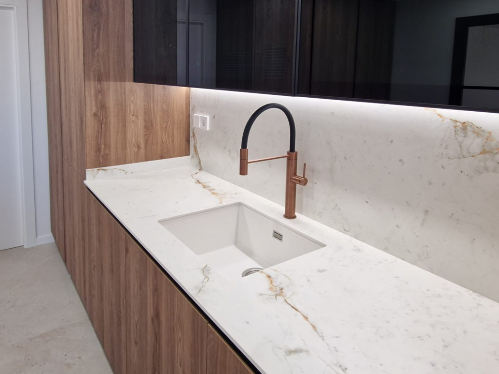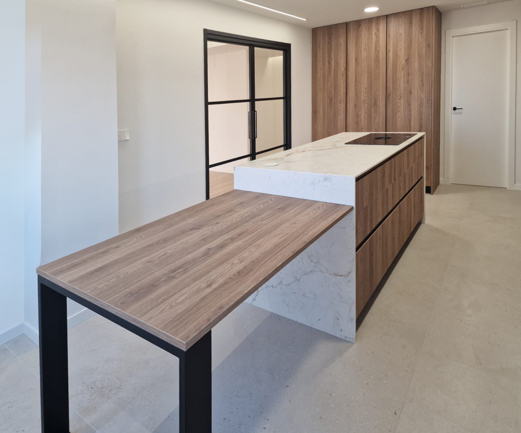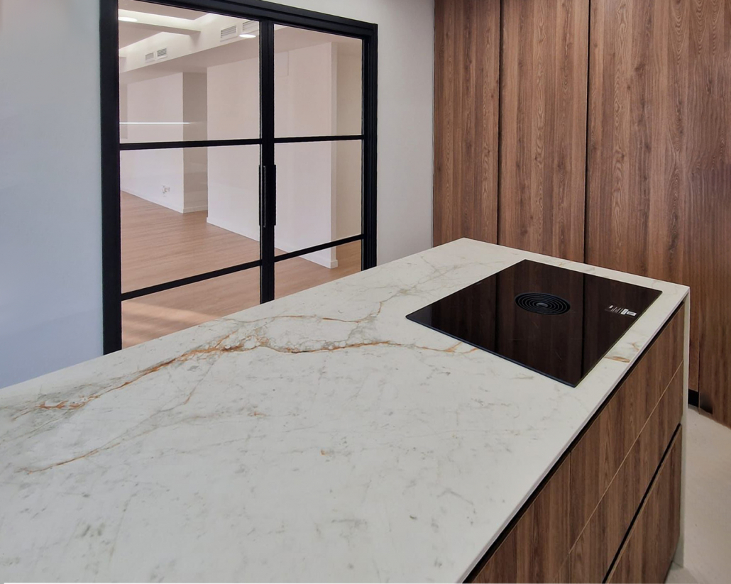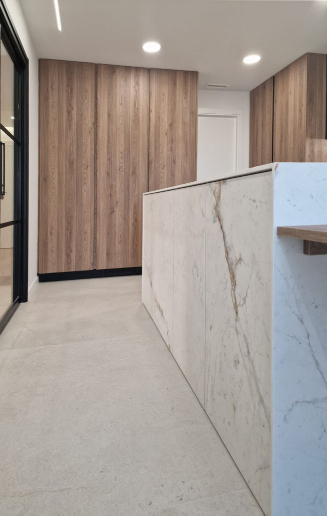 Las puertas estan tambien forradas con el mismo material pero a menos grosor el porcelanico para que pesen tanto.